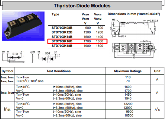 | STD70GK16B | 110 | 70 | 85 | 1600 | 1600 | 0.85 | 3.7 | 1000 | 125 | 0.45 | Fig. 36 | PDF |