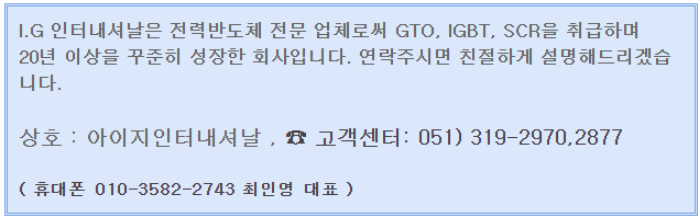 ★ 해당 제품 외에도 다양한 전력반도체를 정직한 가격과 정품으로 판매하고 있습니다. ★