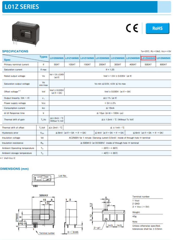 타무라 제품, TAMURA 제품,전류센서, L01Z050S05, L01Z100S05, L01Z150S05, L01Z200S05, L01Z300S05, L01Z400S05, L01Z500S05, L01Z600S05