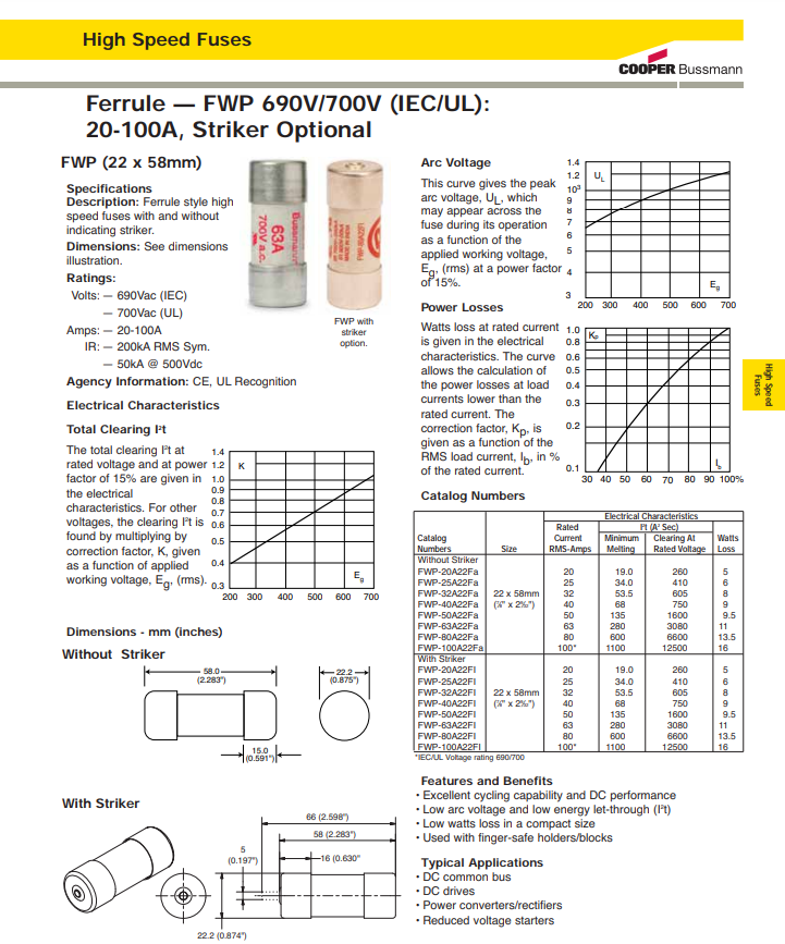 취급품목/POWER FUSE 판매 FWP-100A22F (100A, 700V) by iginter 2022. 1. 19. 이번에 소개 드릴 제품은 부스만 (BUSSMANN)휴즈 입니다. FWP-100A22F (100A, 700V) 사이즈 22*58 공유하기 게시글 관리 아이지인터내셔날 T)051-319-2877 HP)010-3582-2743 관련글 JRS61-50A (50A, 600V) CH221DU (125A, 690V) 부스만휴즈 홀더 A220708 (125A, 600V) 페라츠휴즈 판매 FWH-30A14F (30A, 500V) 부스만휴즈