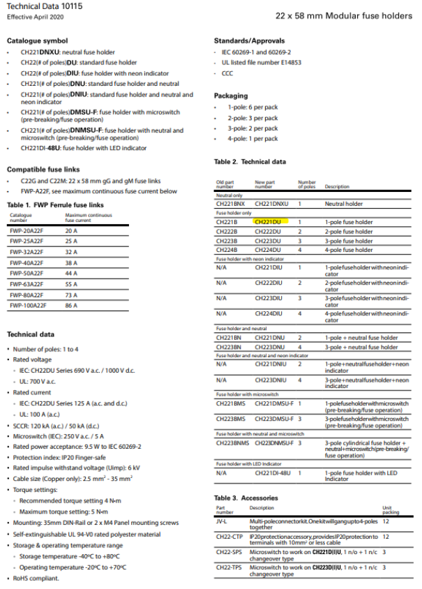 CH221DU (125A, 690V)