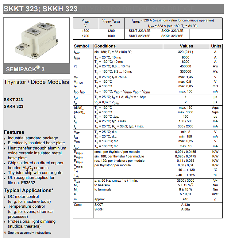 ● SKKT 323/16E (320A, 1600V)