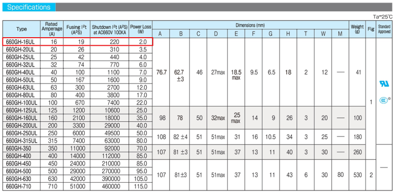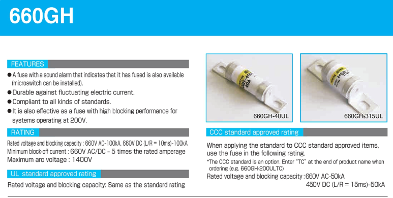 * HINODE 휴즈, 히노데 퓨즈 , 660GH-16UL , 660GH-20UL, 660GH-25UL