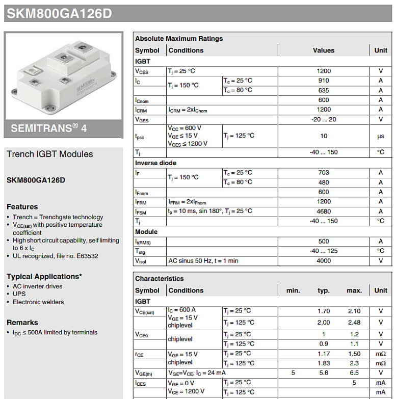 ● SKM800GB126D (800A, 1200V)