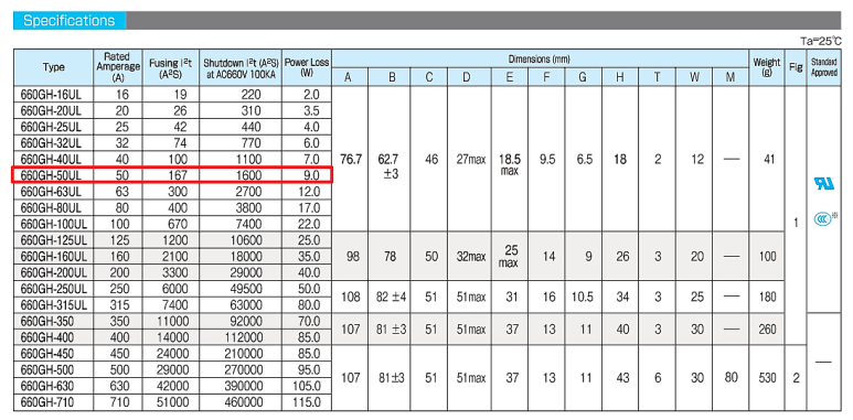 * HINODE 휴즈, 히노데 퓨즈 , 660GH-16UL , 660GH-20UL, 660GH-25UL