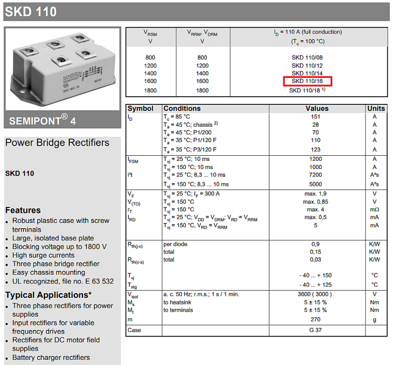 SKD 110/16 (110A , 1600V)