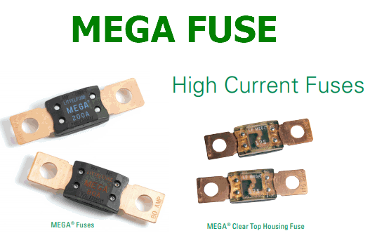 The MEGA Fuse is designed for high current circuit protection up to 500A with “Diffusion Pill Technology.” The MEGA Fuse also provides time delay characteristics. Designed and patented by Littelfuse, the MEGA Fuse is ideal for battery and alternator protection application and other heavy gauge cables requiring ultra-high current protection.