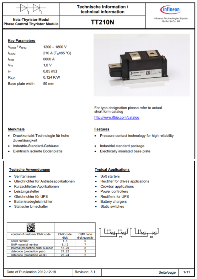 TT210N12KOF (210A, 1200V)