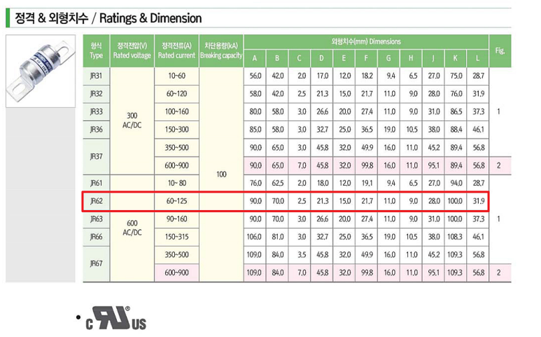 * JR62-80A 판매 - 중원(JOONGWON)휴즈 판매